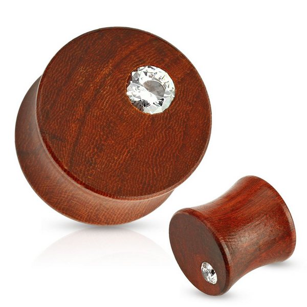 Плаги из дерева махагони украшенные прозрачным кристаллом.