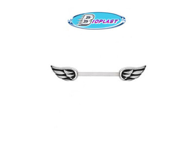 Оригинальные украшения от компании Bioplast. Крылья из хирургической стали 316L, основа - биопласт, при необходимости длину можно уменьшить, обрезав штангу и накрутив резьбу стальным шариком или специальным нарезчиком.
