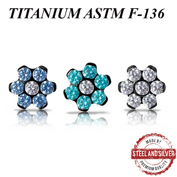 Накрутка на микродермал из имплантационного титана ASTM F-136 ( Ti-6Al-4V ELI ) с черным PVD покрытием. Цветкок с кристаллами Premium Zirconia.