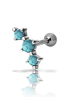 Микроштанга из хирургической стали 316L с кластером из искусственной бирюзы.