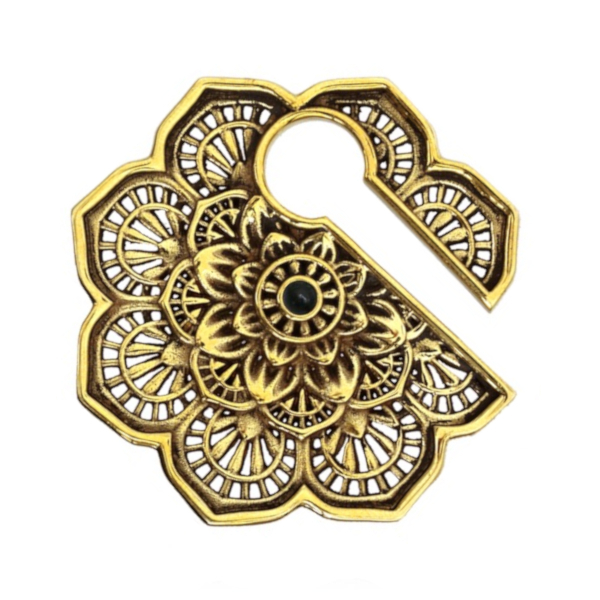 Литые подвесы из латуни в форме мандалы с чёрным ониксом в центре.