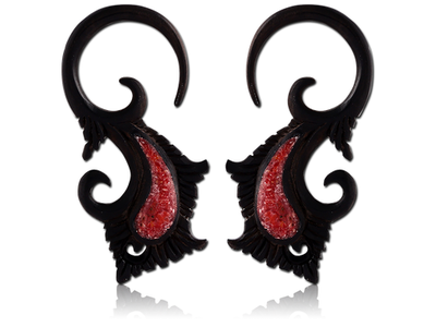 Фигурные спирали из натурального дерева со вставкой из коралла.