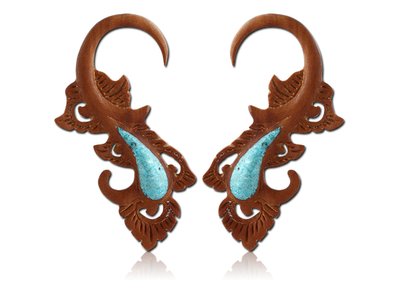 Фигурные спирали из древесины палисандра со вставкой из искусственной бирюзы.