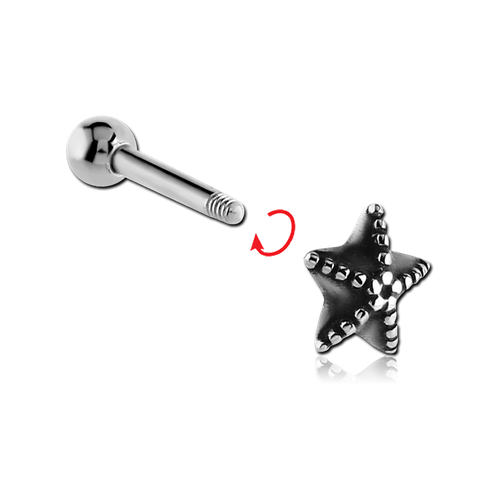 Микроштанга из хирургической стали 316L в виде морской звезды. Размер декоративной части - 7.5мм.