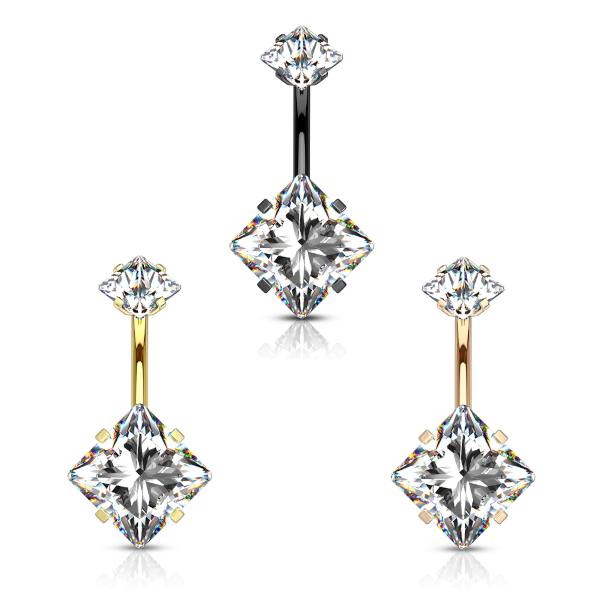 Банан из хирургической стали 316L с внутренней резьбой и PVD покрытием. Украшен фианитом размером 11мм.