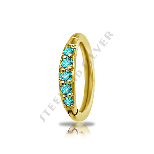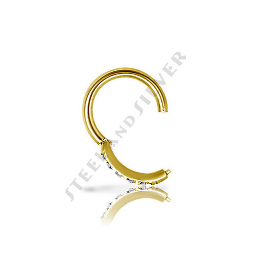 Кликер из хирургической стали 316L с PVD покрытием 24х каратного золота. Украшен пятью фианитами Swarovski.