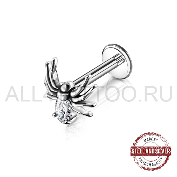 • Лабрет Steel and Silver паук с Premium Zirconia