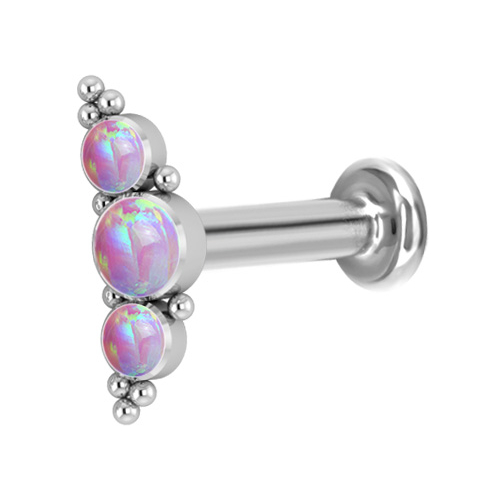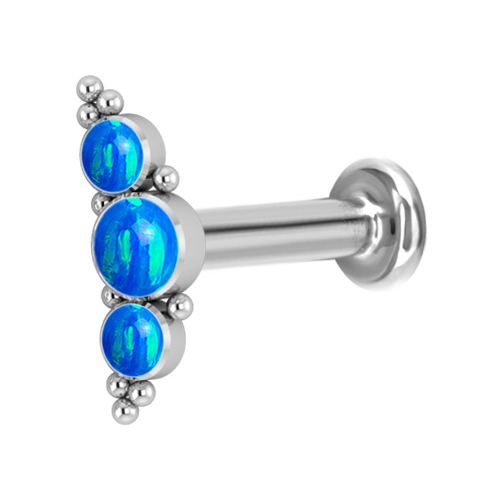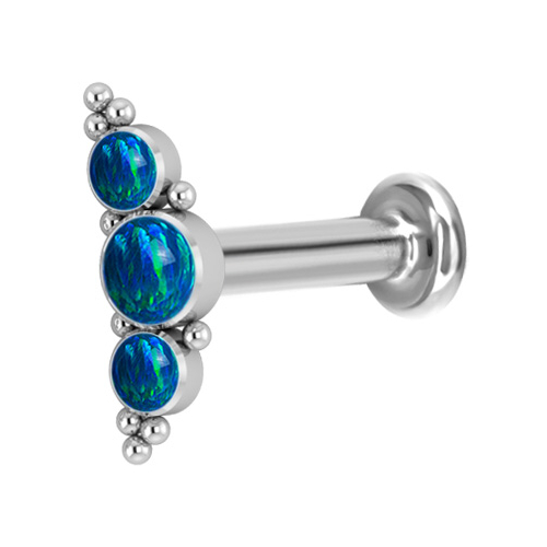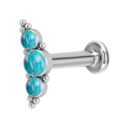 Лабрет из имплантационного титана 6Al-4V-Eli ASTM: F-136 с внутренней резьбой. Украшен кластером с искусственными опалами.