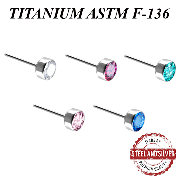 Вставка из имплантационного титана 6Al-4V-Eli ASTM: F-136 для безрезьбовых украшений. Украшена Premium Zirconia.