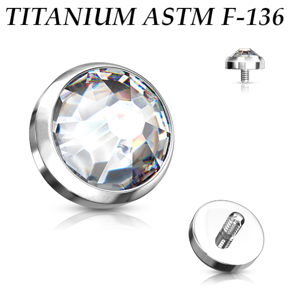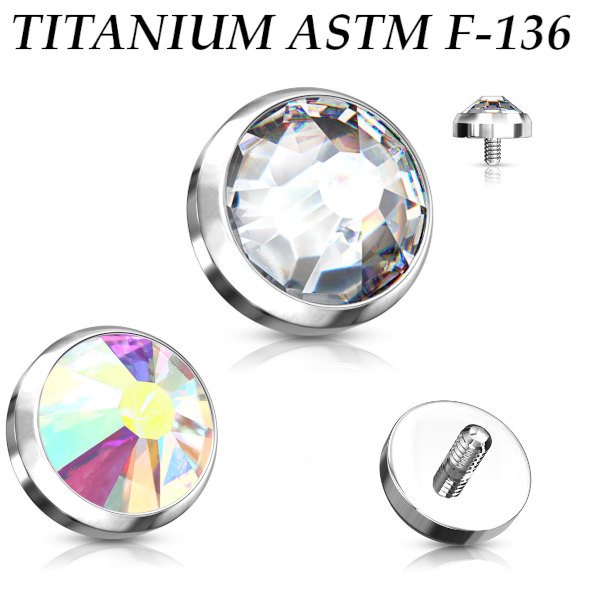 Накрутка из имплантационного титана ASTM F-136. Украшена кристаллом. Диаметр накруток: 4, 5, 6 и 8мм. Резьба 1.2мм, подходит для украшений с внутренней резьбой толщиной 1.6мм.