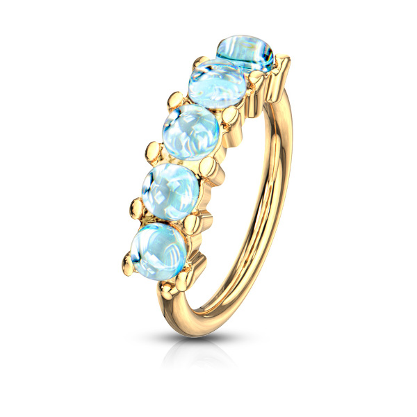 Раздвижное кольцо из хирургической стали 316L с золотым PVD покрытием, украшено голубыми эпоксидными  кабошонами.
