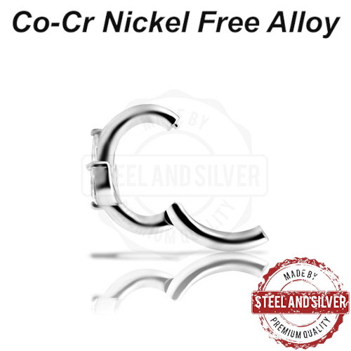 Овальный кликер из кобальт-хрома украшен тремя премиальными цирконами. Размер декоративной части - 6х8мм.