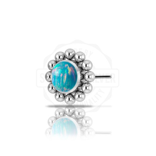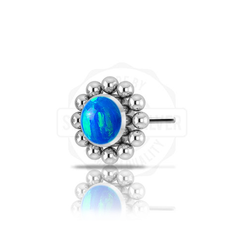 Вставка из имплантационного титана 6Al-4V-Eli ASTM: F-136 для безрезьбовых украшений. Украшена лабораторным опалом диаметром 3мм.