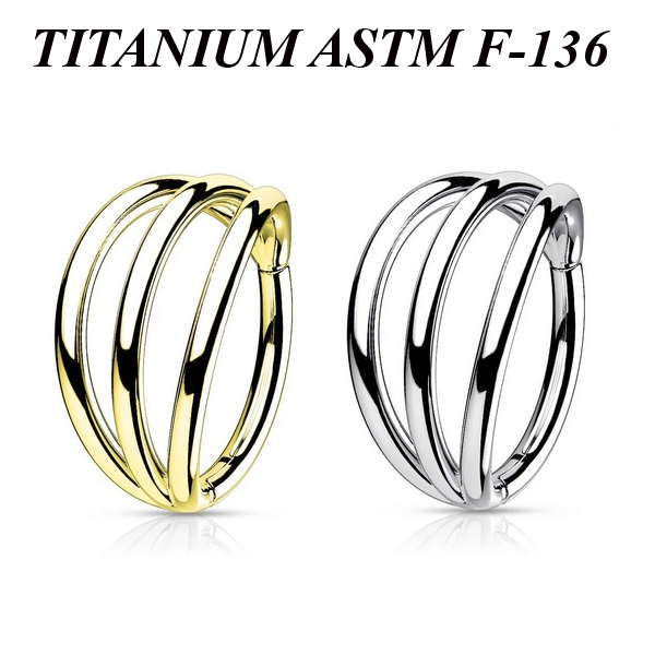 Кликер из имплантационного титана 6Al-4V-Eli ASTM: F-136 с тремя дугами.  Представлен в двух вариантах: классический титановый  и с золотым PVD покрытием.
