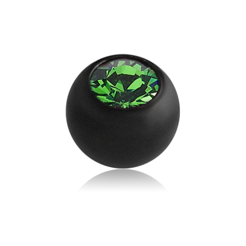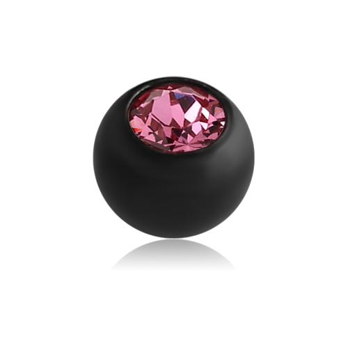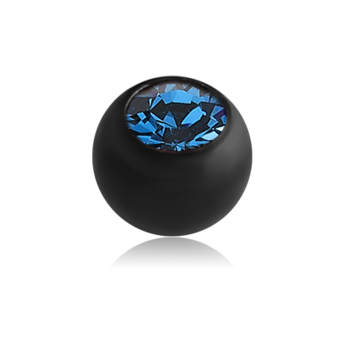 Шарик из имплантационного титана ASTM F-136 с чёрным PVD покрытием украшен цветным стразом. Подходит для украшений с внешней резьбой.