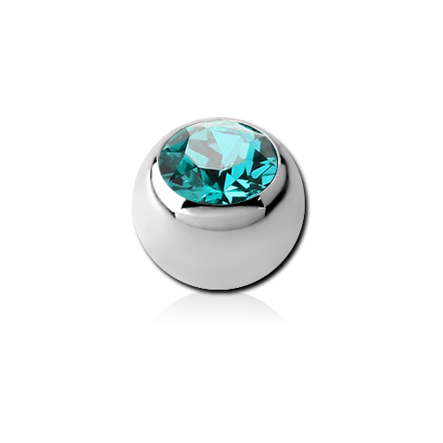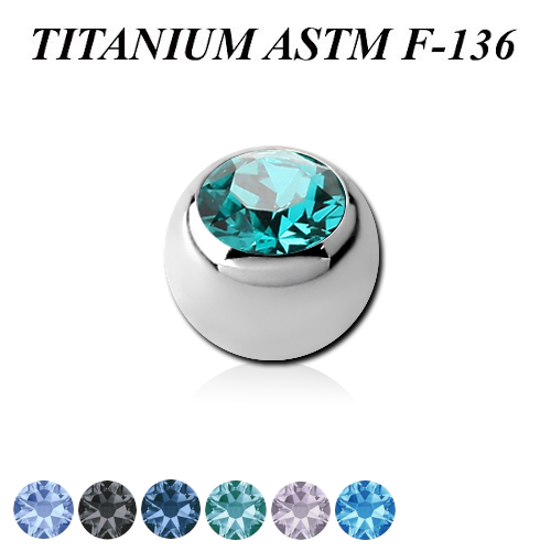 Шарик из имплантационного титана ASTM F-136 украшен цветным стразом. Подходит для украшений с внешней резьбой, толщиной 1.6мм.