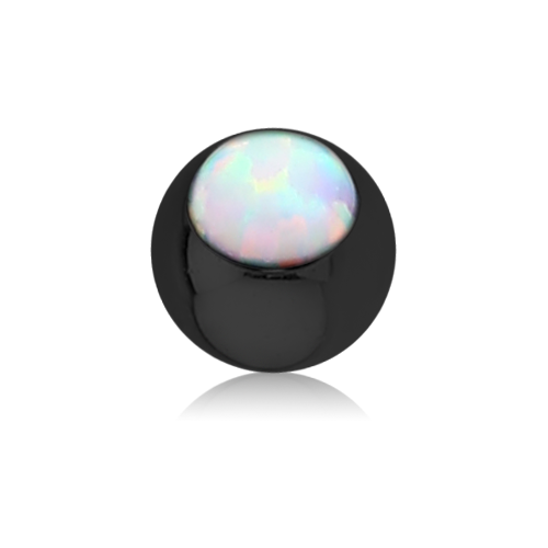 Шарик из хирургической стали 316L с чёрным PVD покрытием украшен лабораторным опалом. Подходит для украшений с внешней резьбой.