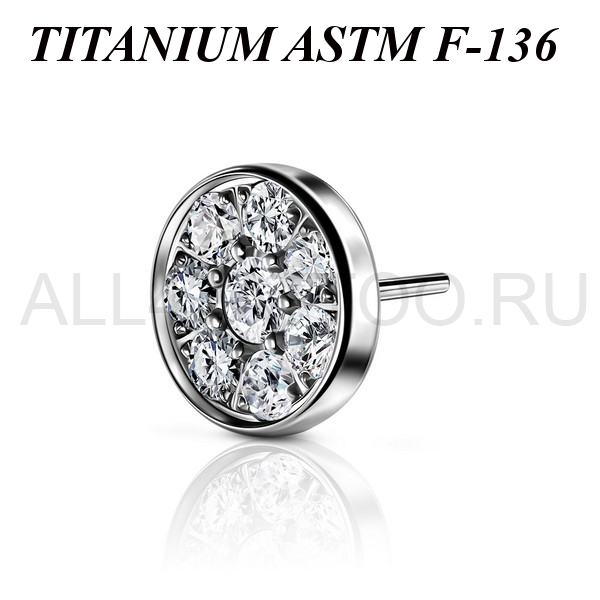Вставка из имплантационного титана 6Al-4V-Eli ASTM: F-136 для безрезьбовых украшений. Украшена прозрачными фианитами.