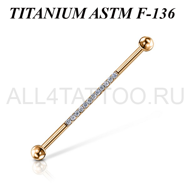 Индастриал из имплантационного титана 6Al-4V-Eli ASTM: F-136 с золотым покрытием. Украшен сетом фианитов.
