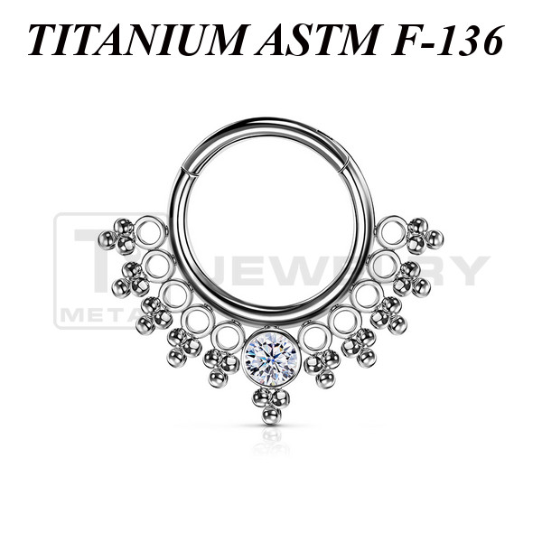 Ажурный кликер из имплантационного титана 6Al-4V-Eli ASTM: F-136 с прозрачным фианитом.
