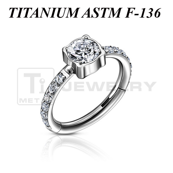 Кликер из имплантационного титана 6Al-4V-Eli ASTM: F-136. Украшен сетом прозрачных фианитов. Диаметр центрального кристалла: 3мм.