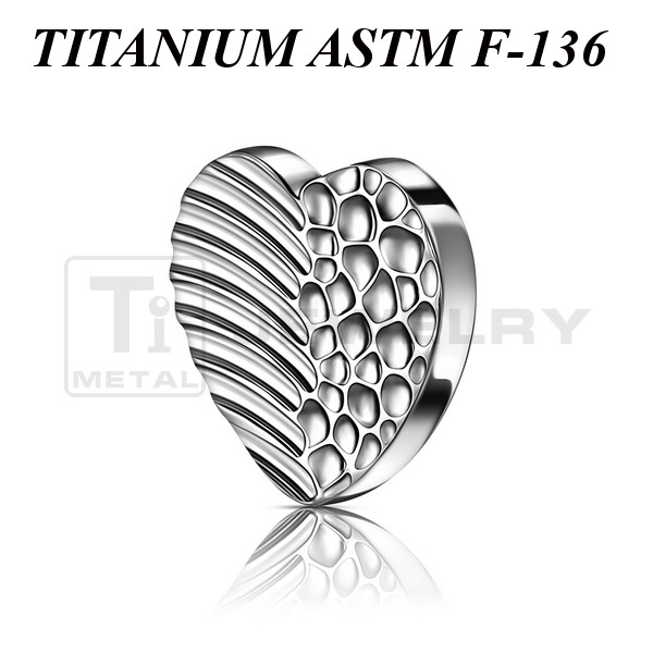 Накрутка из имплантационного титана 6Al-4V-Eli ASTM: F-136 в форме сердца с рельефными лунками. Подходит для украшений с внутренней резьбой толщиной 1 и 1,2 мм.