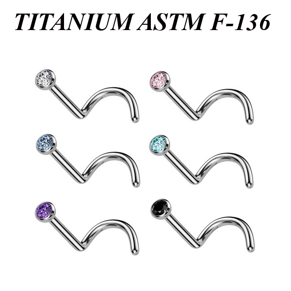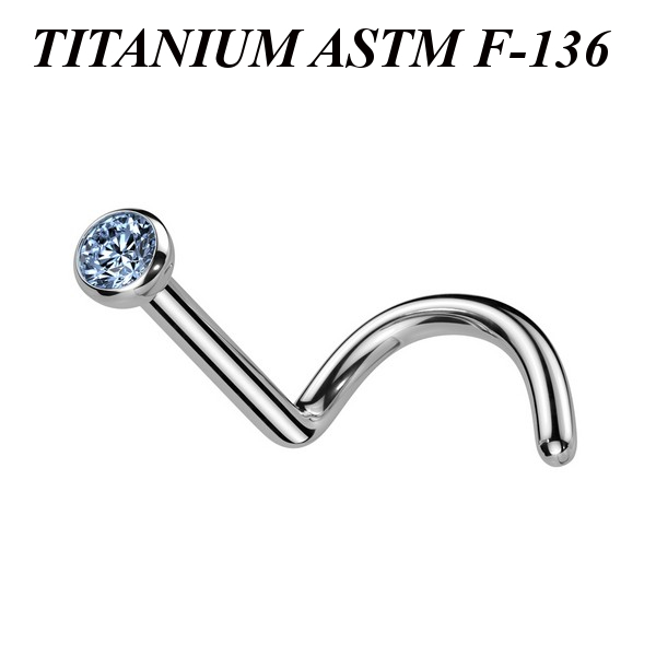 Нострил из имплантационного титана 6Al-4V-Eli ASTM: F-136 украшенный фианитом диаметром 2мм.