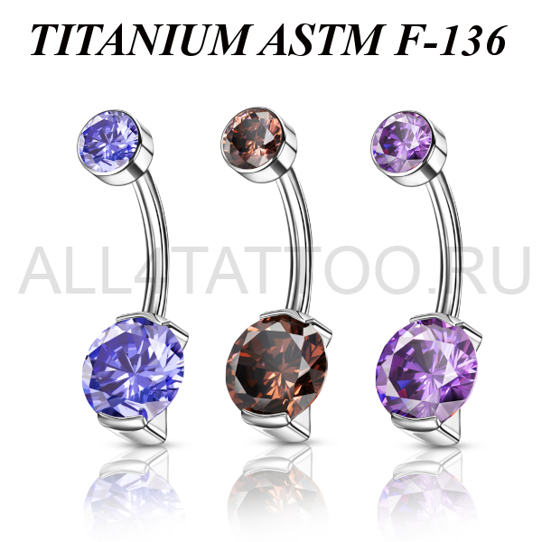 Банан из имплантационного титана 6Al-4V-Eli ASTM: F-136 с внутренней резьбой. Украшен фианитами. Диаметр нижнего кристалла - 8мм, верхнего - 5мм.