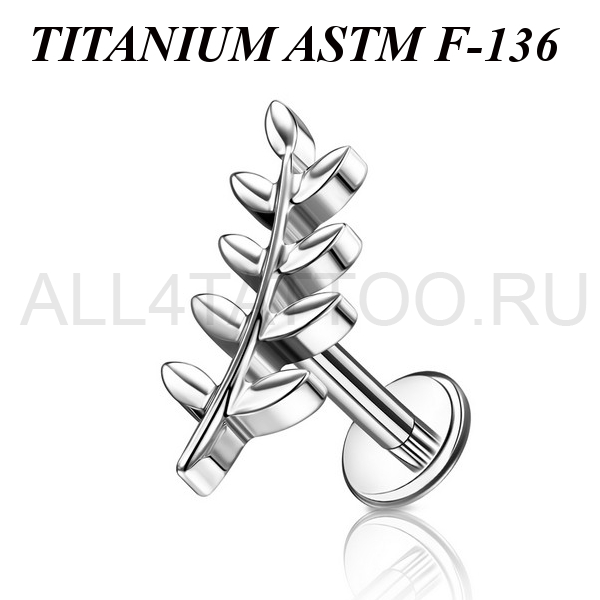 Лабрет с внутренней резьбой из имплантационного титана 6Al-4V-Eli ASTM: F-136. Украшен фигурной накруткой.  Размер декоративной части: 5х11мм.