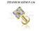 Лабрет с внутренней резьбой из имплантационного титана 6Al-4V-Eli ASTM: F-136 с накруткой украшенной прозрачными фианитами. Представлен в двух вариантах: классический титановый и с золотым PVD покрытием. Размер накрутки: 4,3х4,3мм.
