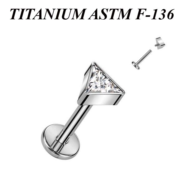 Лабрет с внутренней резьбой из имплантационного титана 6Al-4V-Eli ASTM: F-136 с треугольным финитом.