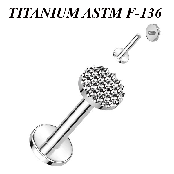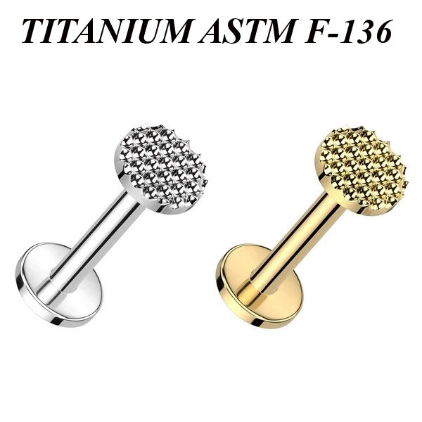 Лабрет с внутренней резьбой из имплантационного титана 6Al-4V-Eli ASTM: F-136. Представлен в двух вариантах: классический титановый и с золотым PVD покрытием.