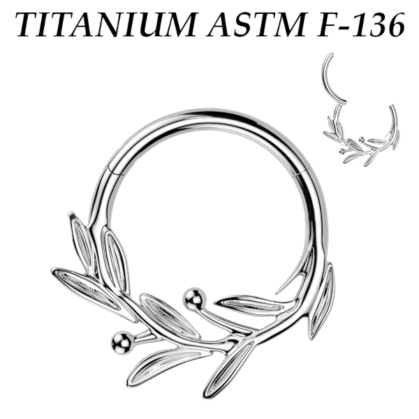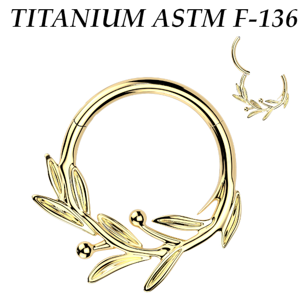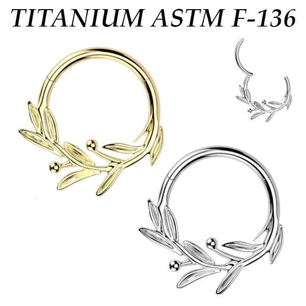 Кликер из имплантационного титана 6Al-4V-Eli ASTM: F-136 в форме ветви оливы. Представлен в двух вариантах: классический стальной и с золотым PVD покрытием.