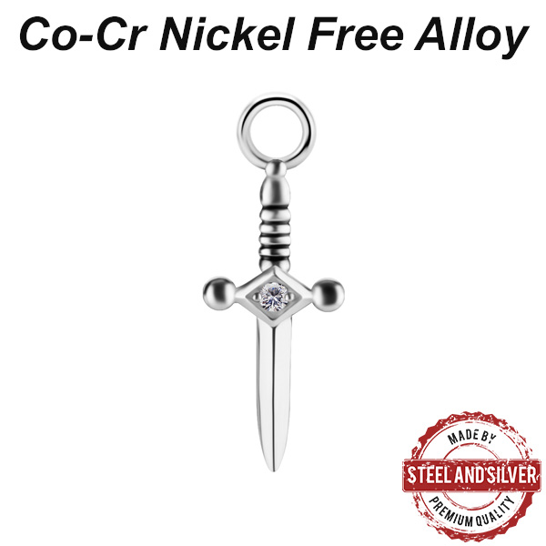 Подвеска из сплава кобальт-хрома, без содержания никеля. Украшена кристаллом Premium Cubic Zirconia. Подходит для колец толщиной не более 2,5мм. Представлен так же вариант с 18-ти каратным золотым PVD покрытие