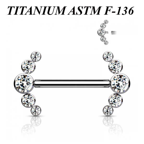 Украшение для груди из имплантационного титана 6Al-4V-Eli ASTM: F-136 с внутренней резьбой. Украшено фианитами